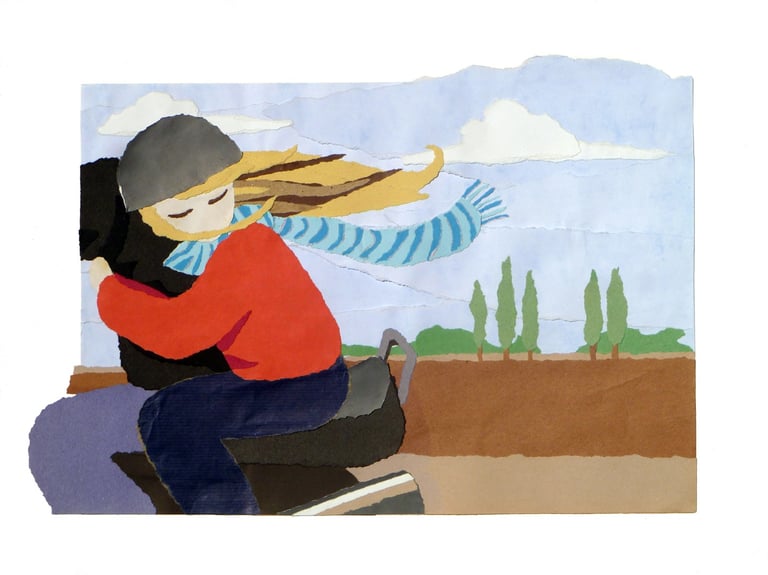 Mixed techniques with paper collage.